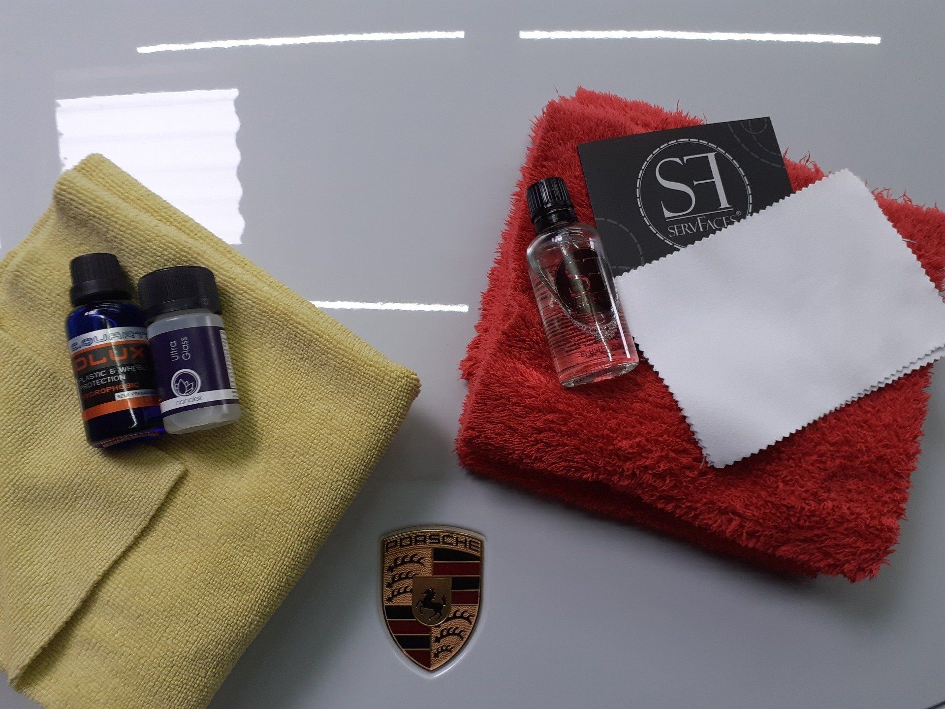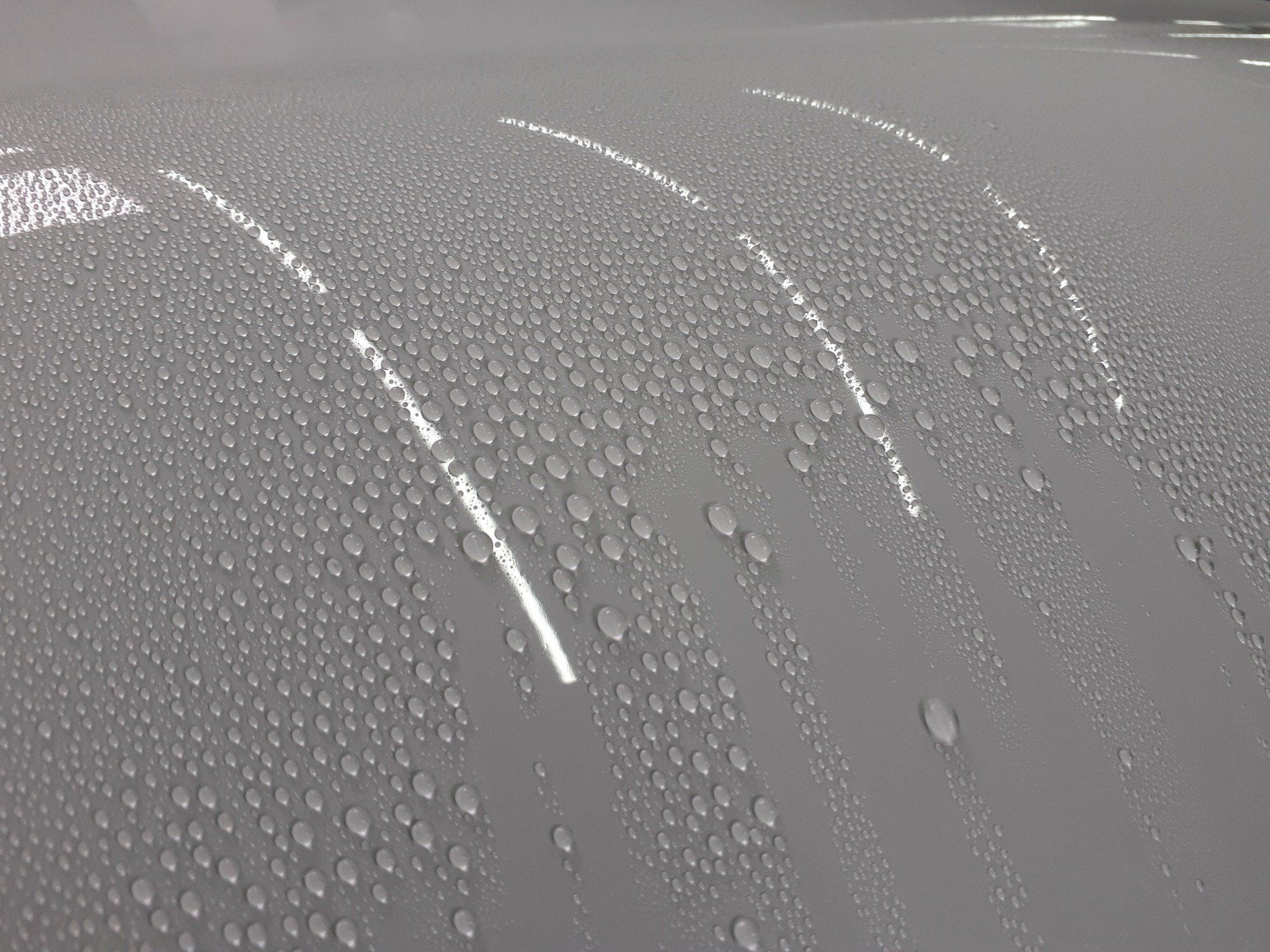 Danach wird das gesamte Fahrzeug mit einer alkoholbasierten Mischung entfettet um es für den Auftrag des Lackschutzes vorzubereiten. Denn egal ob Versiegelung oder langlebige Keramikbeschichtung (ein so genanntes "Coating"), für die optimale Haftung muss der Lack frei von Staub, Polierölen und Resten sonstiger Pflegemittel sein.