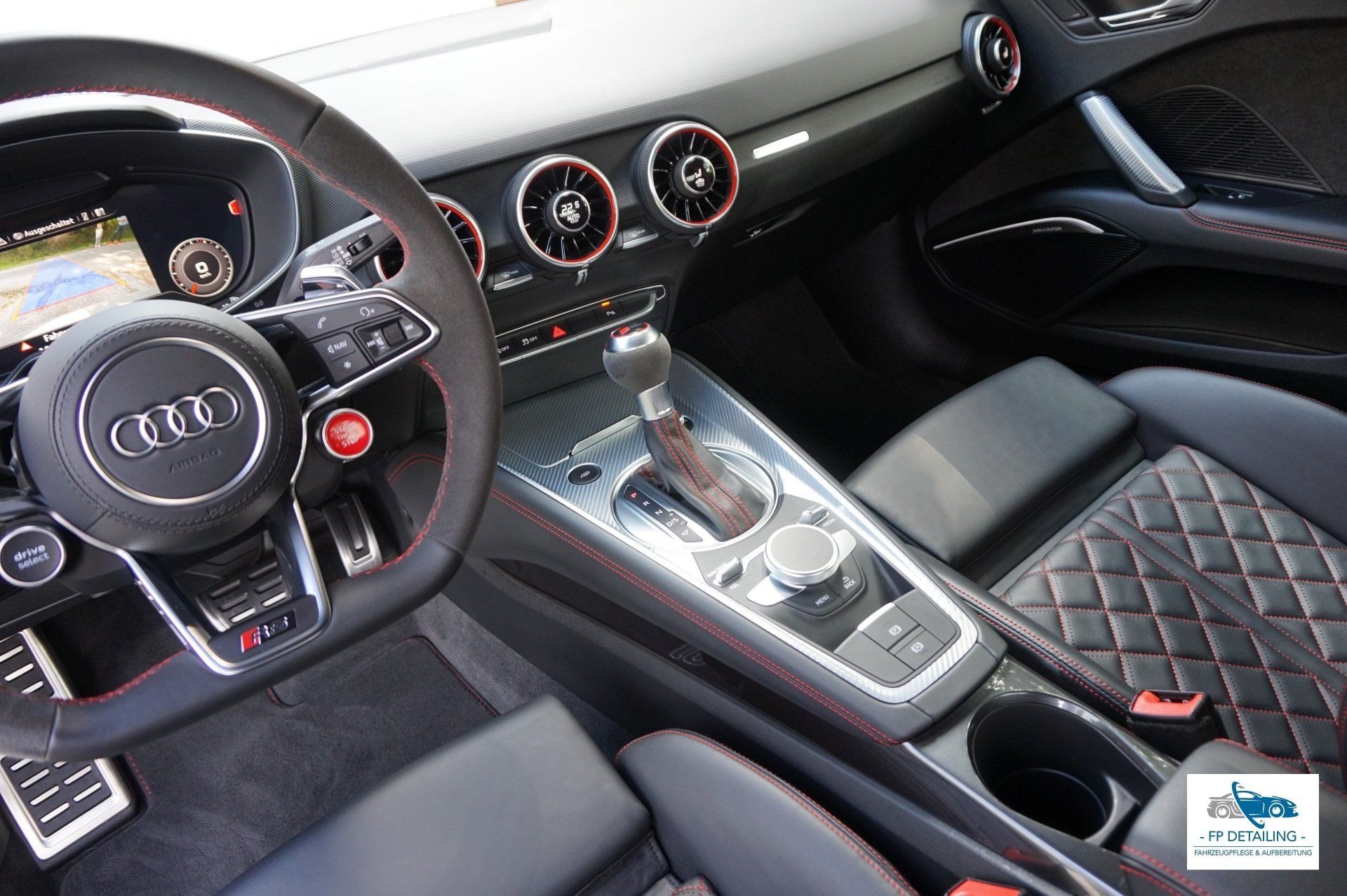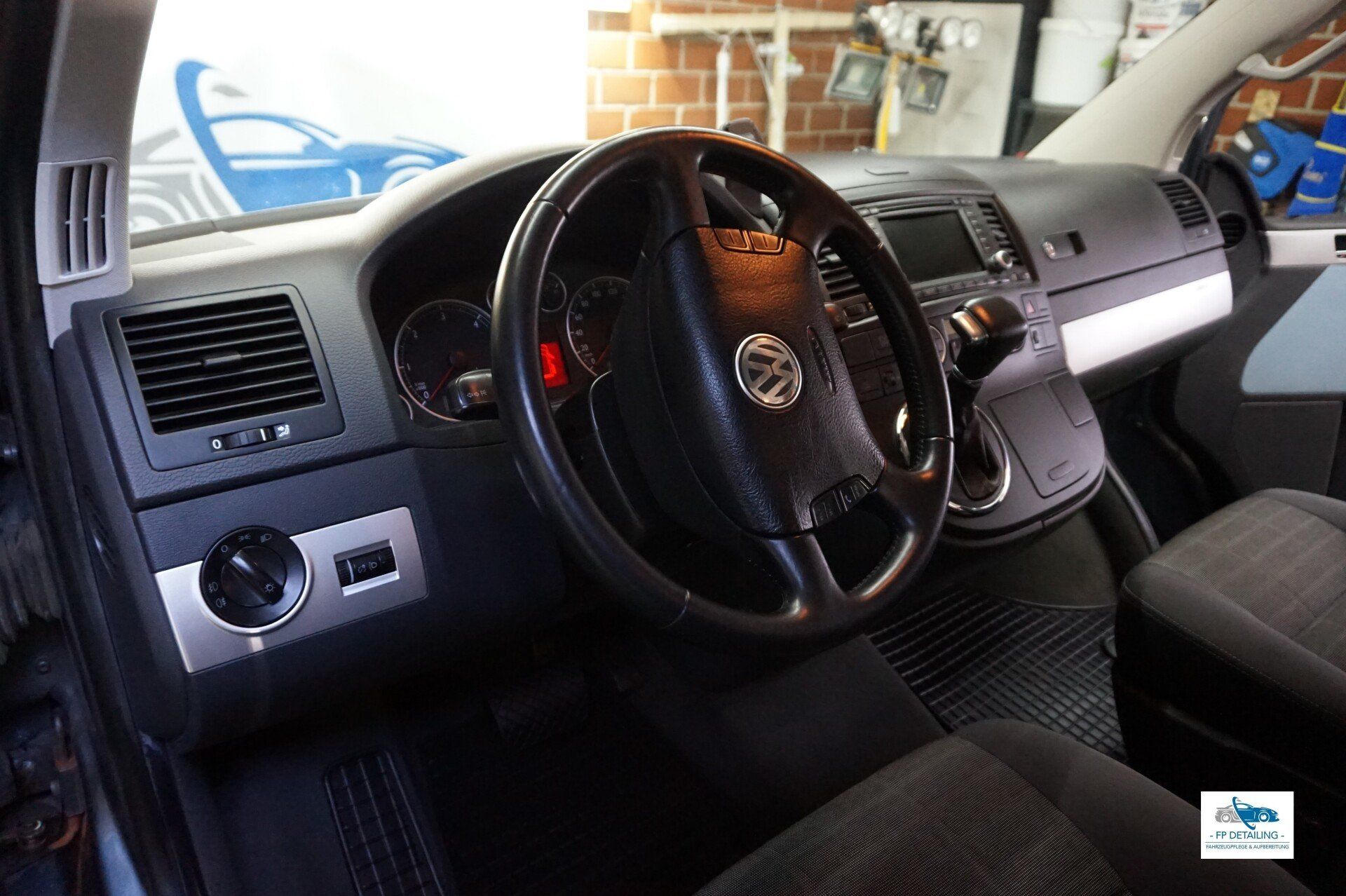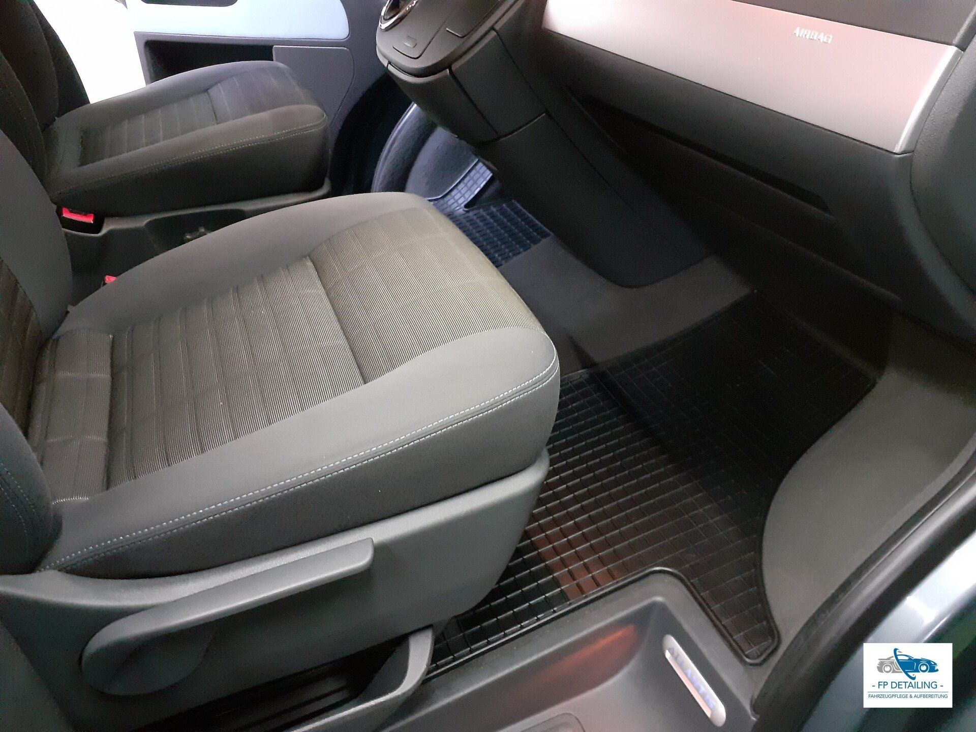 Auch hier wird wieder in mehreren Stufen gearbeitet. Zuerst wird das Fahrzeug gründlich ausgesaugt um möglichst viel Schmutz vorab zu entfernen, dann beginnt die Reinigung von Armaturen, Kunststoffen und sonstigen Elementen.